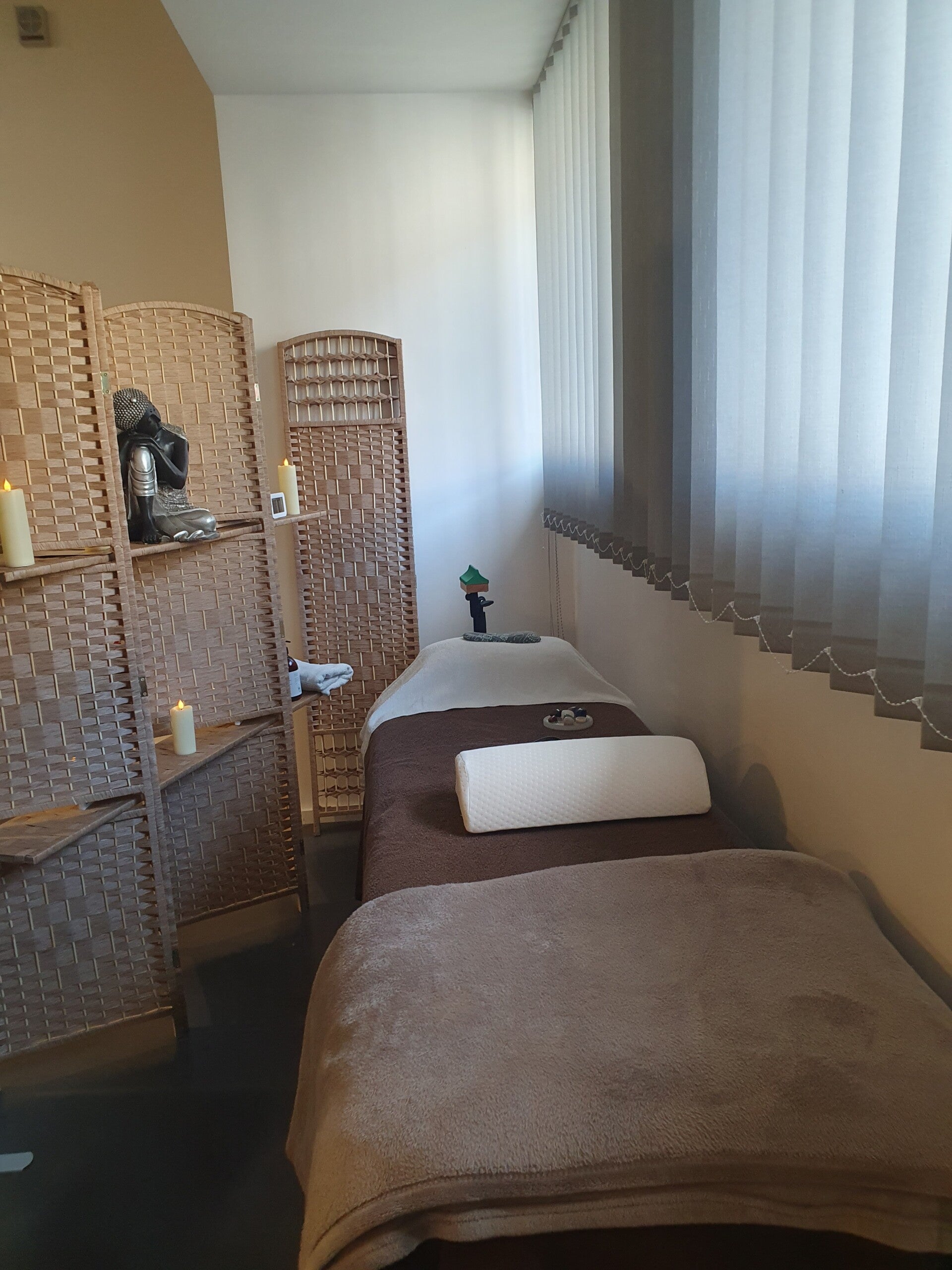 Vous restez entièrement habillé(e) et vous êtes confortablement installé(e) sur une table de massage ou une chaise, dans une ambiance calme et apaisante.